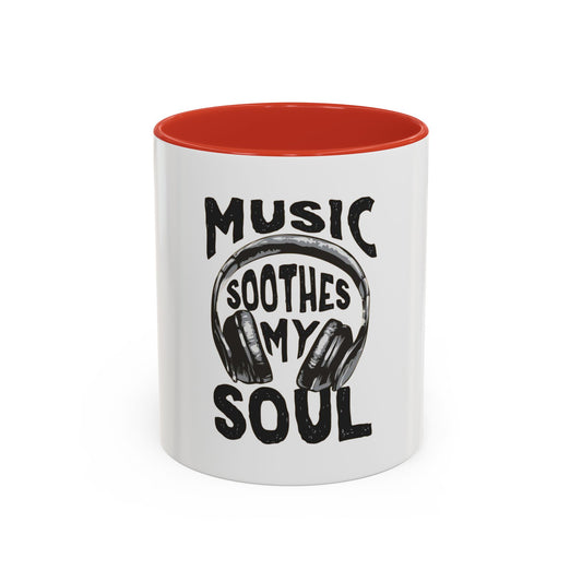 ‘Music Soothes My Soul’ Accent Coffee Mug - Stylish Black Handle & Interior, Perfect Gift for Music Lovers