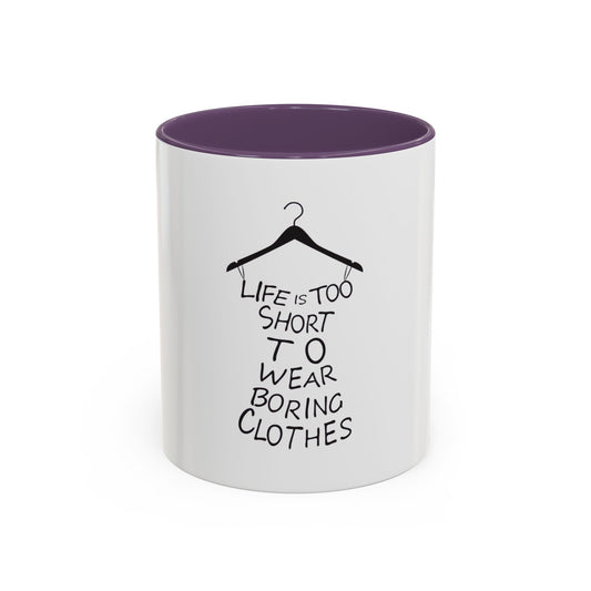 'Life is Too Short To Wear Boring Clothes' Accent Coffee Mug - Inspirational quote